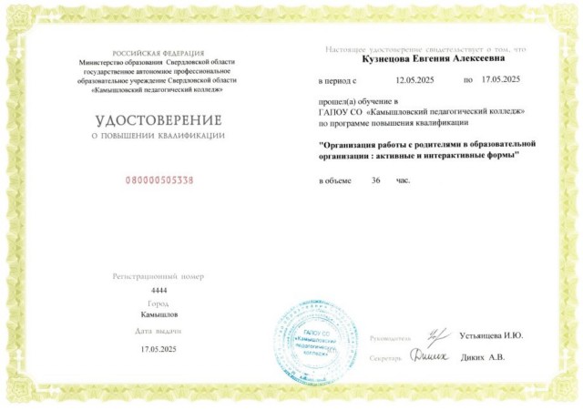 Программа повышения квалификации "Организация работы с родителями в образовательной организации: активные и интерактивные формы"